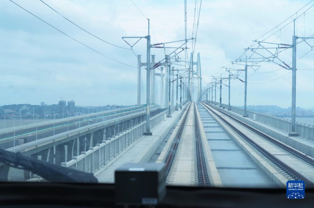8月31日,試運行列車經過福廈高鐵泉州灣跨海大橋。