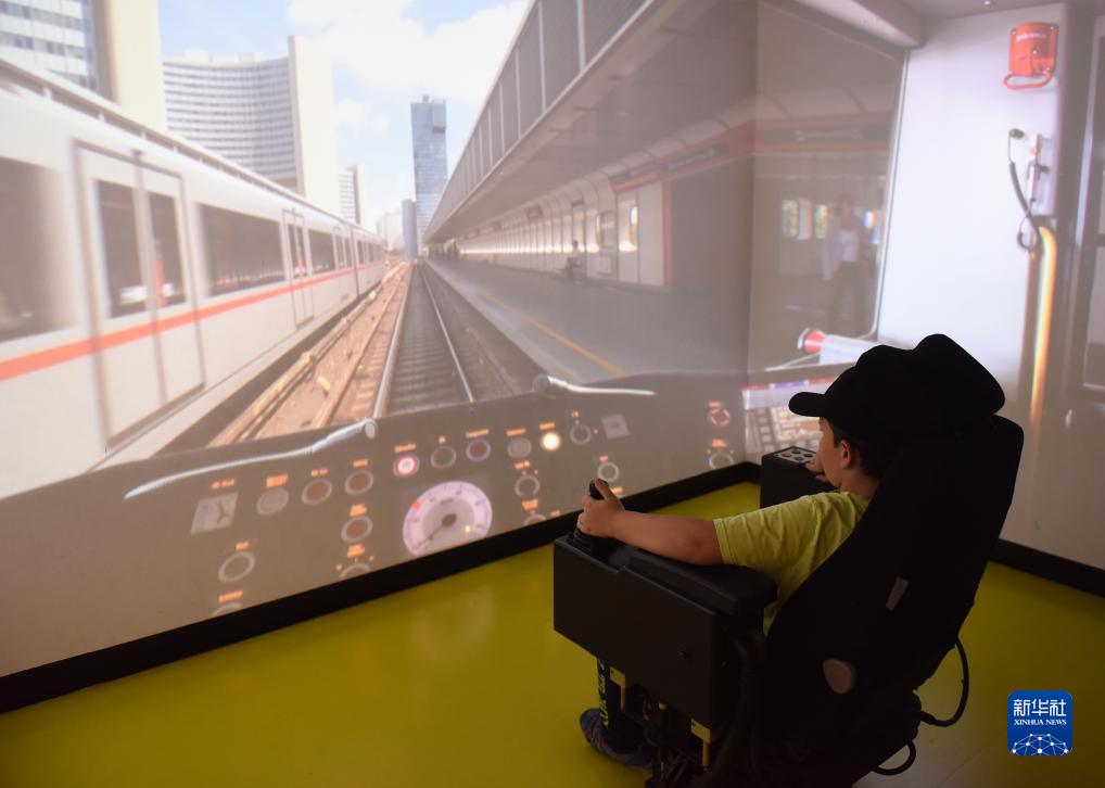 8月30日,在奧地利維也納交通博物館,觀眾模擬體驗地鐵列車駕駛。