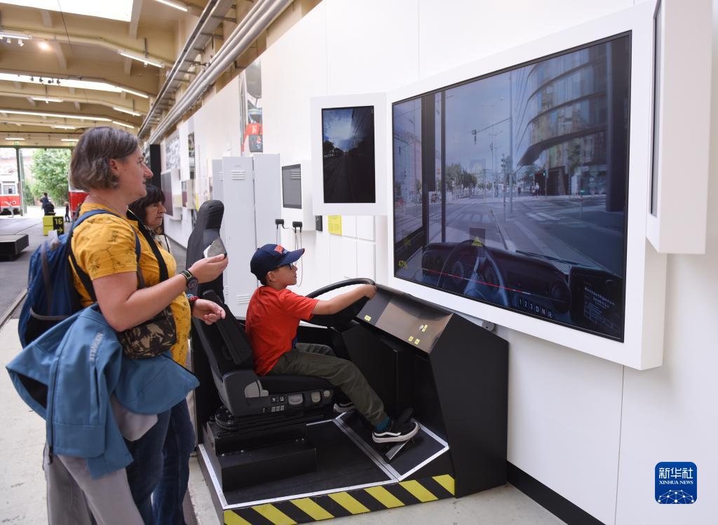 8月30日,在奧地利維也納交通博物館,觀眾模擬體驗有軌電車駕駛。