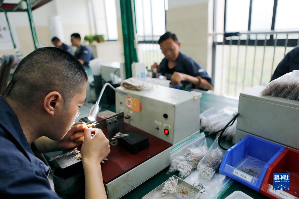 8月30日,在鹽城市殘疾人托養中心就業託管車間,學員在加工氖燈。