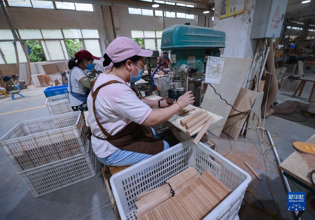 8月31日,在位於雲和縣的浙江金馬工藝品有限公司的車間內,工人在加工木制玩具。