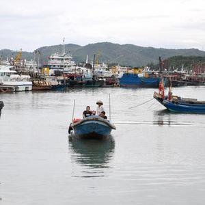 8月31日,在廣東省汕尾港避風塘,漁船歸港避風(無人機照片)。