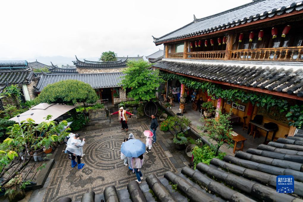 麗江市玉龍納西族自治縣白沙鎮玉湖村村民和傑林在自家的納西文化體驗館為游客介紹納西族建築文化(8月28日攝)。