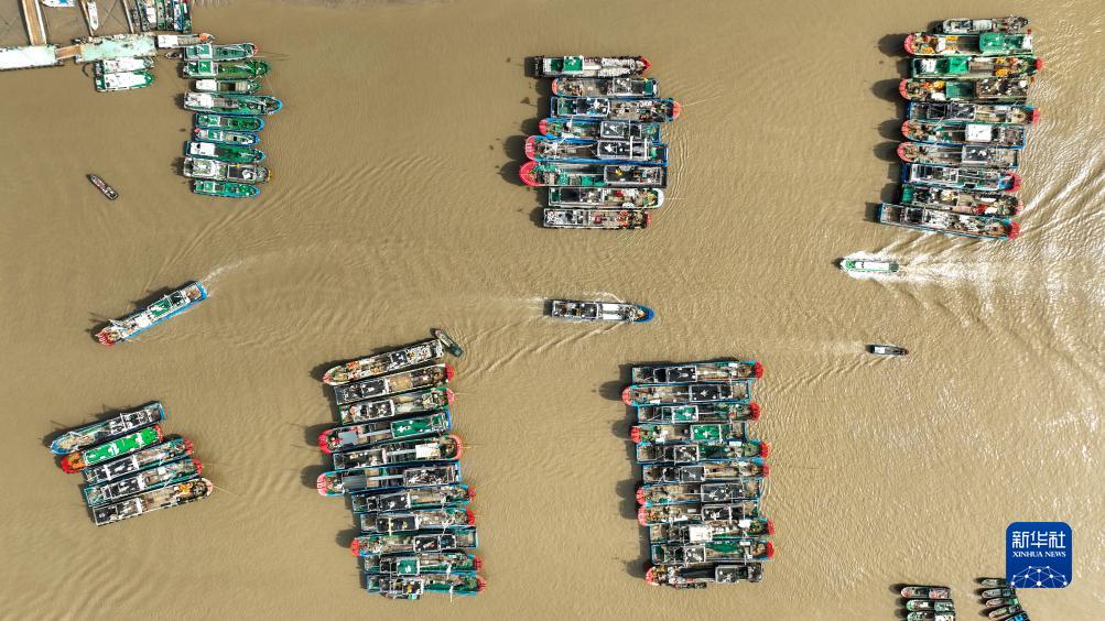 8月31日,漁船駛入浙江舟山沈家門漁港避風(無人機照片)。