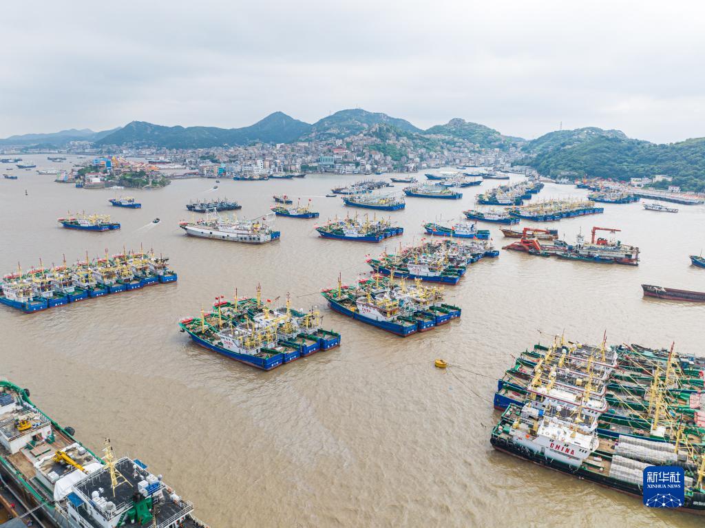 8月31日,在浙江省溫嶺市石塘鎮箬山漁港內,大批漁船回港避風(無人機照片)。