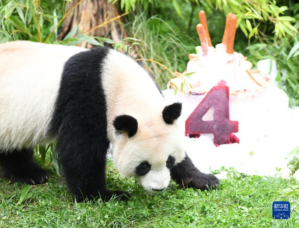 當日,在德國出生的大熊貓雙胞胎兄弟“夢想”和“夢圓”迎來4歲生日,柏林動物園為它們舉辦了慶祝活動。