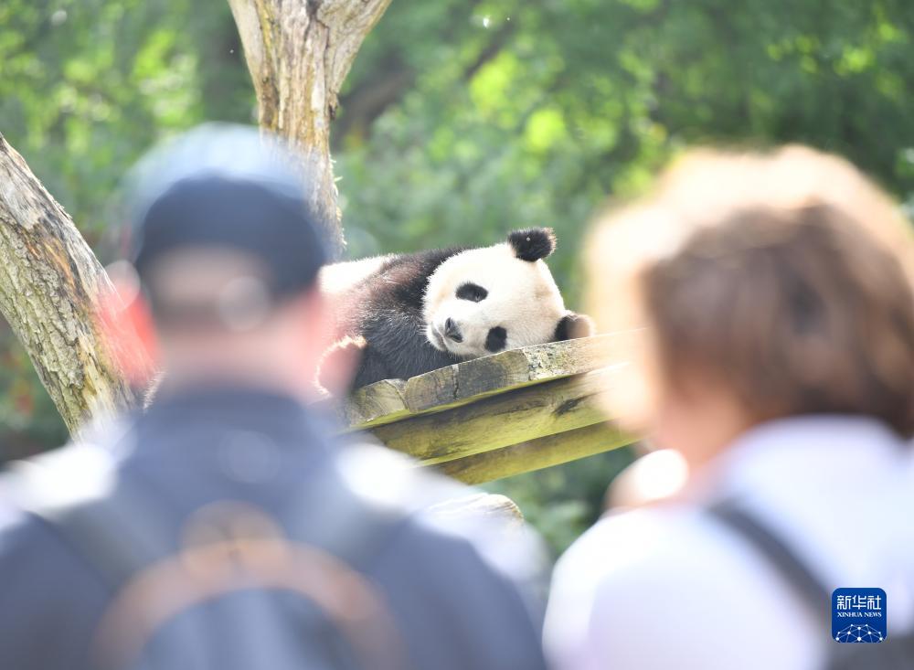 8月31日,游客在德國柏林動物園觀看大熊貓“夢圓”。