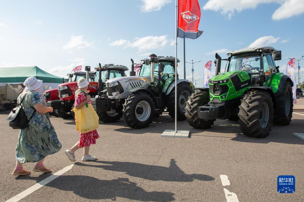 8月31日,參觀者在俄羅斯聖彼得堡第32屆國際農業工業展上參觀農業設備。