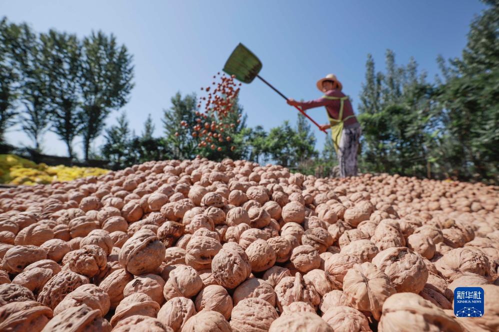 初秋時節,各地農民搶抓晴好天氣,加緊收穫、晾曬農作物。