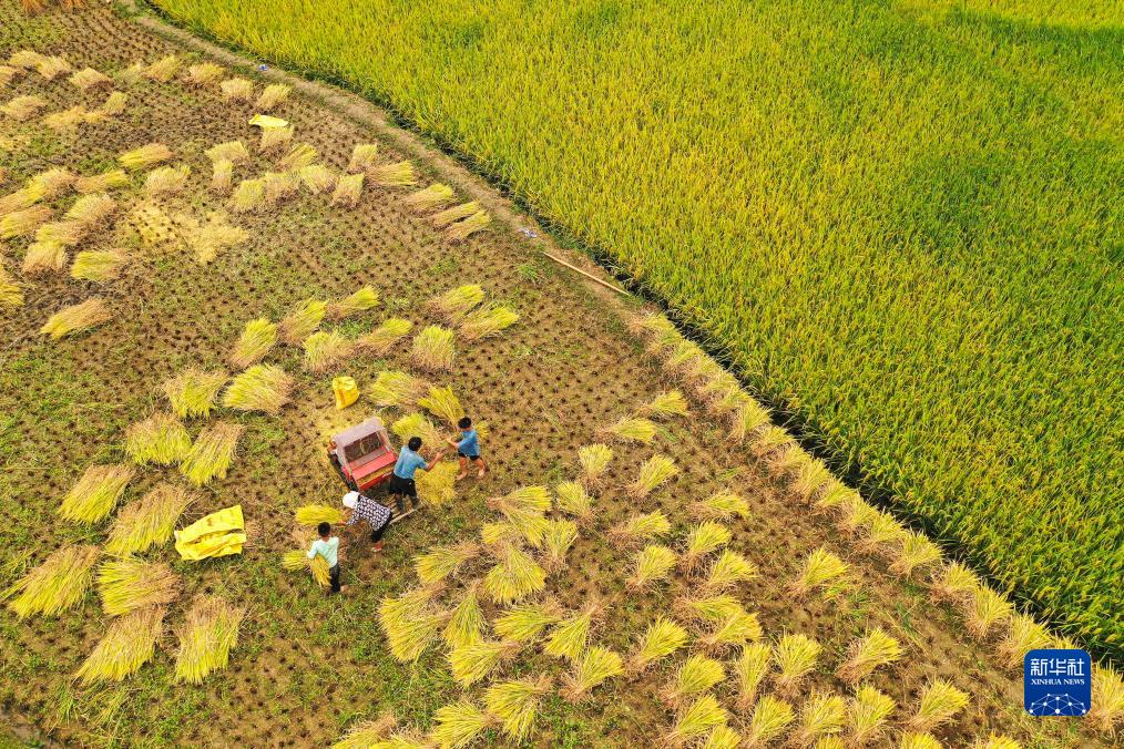 初秋時節,各地農民搶抓晴好天氣,加緊收穫、晾曬農作物。