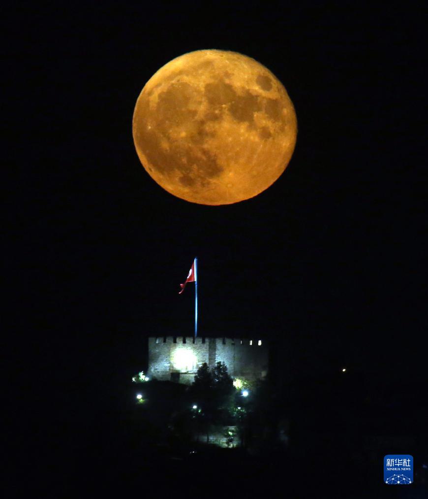 8月31日,“超級月亮”在土耳其安卡拉城堡上空升起。