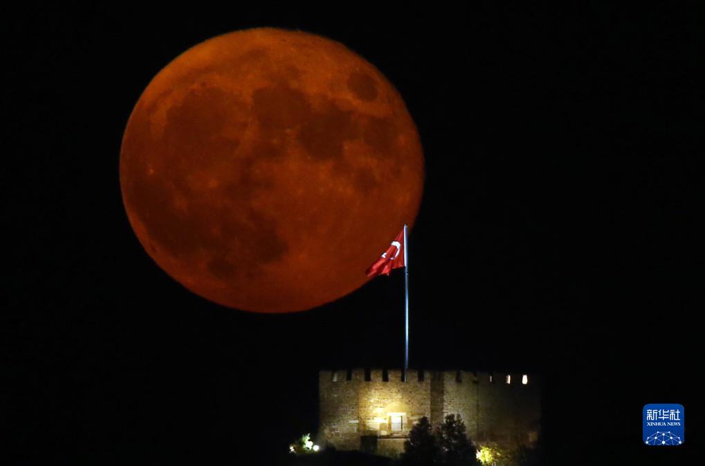 8月31日,“超級月亮”在土耳其安卡拉城堡上空升起。