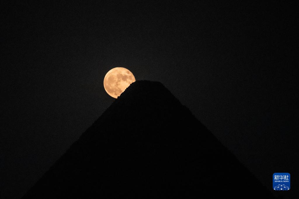 這是8月31日在埃及吉薩的胡夫金字塔旁拍攝的“超級月亮”。