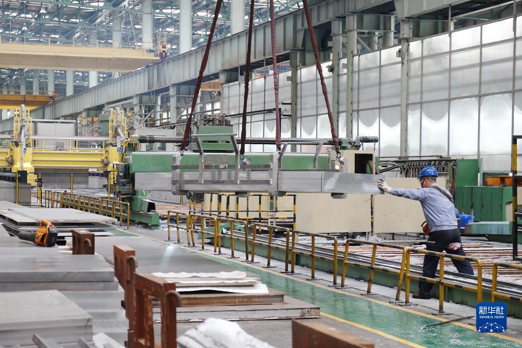 8月31日,工人在東北輕合金有限責任公司中厚板廠將物料送往下道工序。東輕公司在高精尖先進鋁加工關鍵技術方面處於領先地位,被譽為“中國鋁鎂加工業搖籃”。