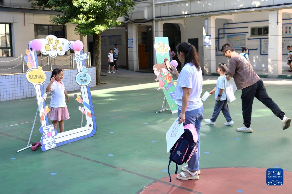 9月1日,湖南省長沙市天心區沙湖橋小學一年級新生在開學迎新活動中。