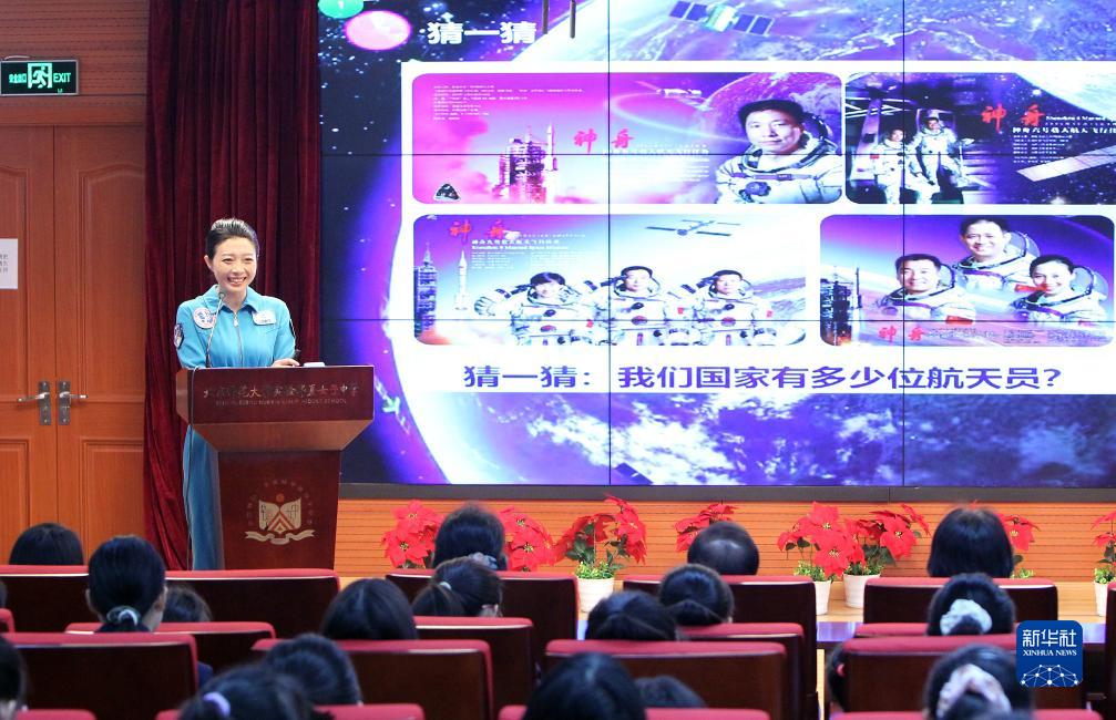9月1日,在北京市北師大實驗華夏女中開學典禮上,航天員教官王一在講授開學一課,勉勵同學們樹立航天夢。