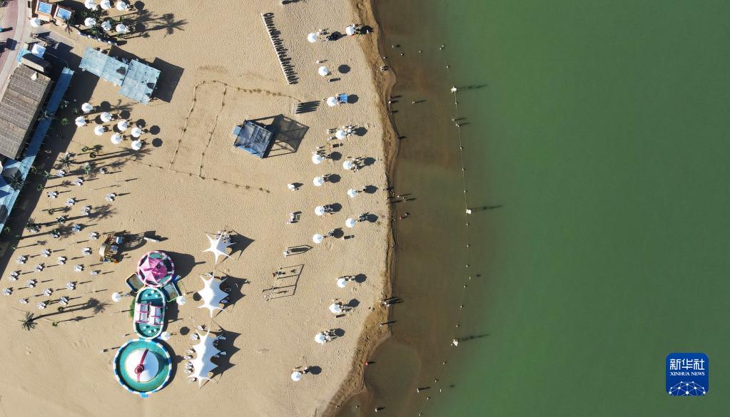 8月31日拍攝的新疆博斯騰湖大河口景區(無人機照片)。