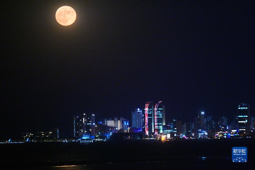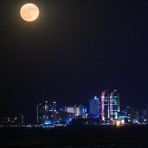 這是8月31日在科威特哈瓦利拍攝的“超級月亮”。