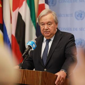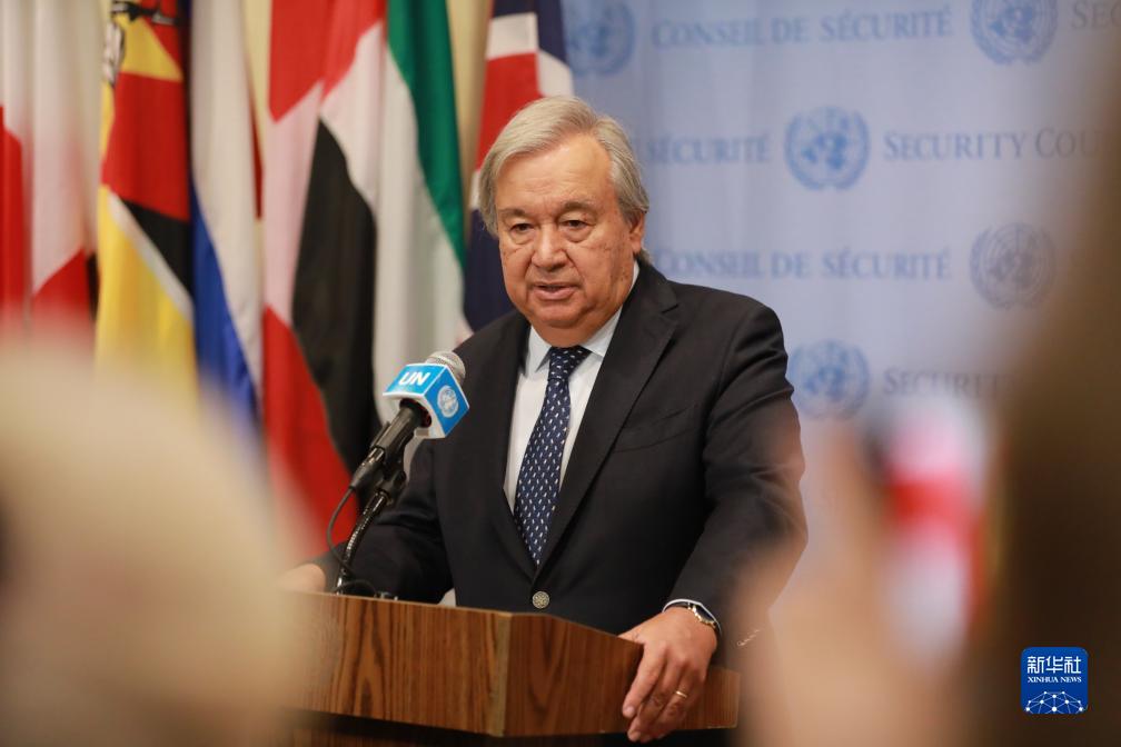 8月31日,聯合國秘書長古特雷斯在位於紐約的聯合國總部舉行的新聞發布會上講話。
