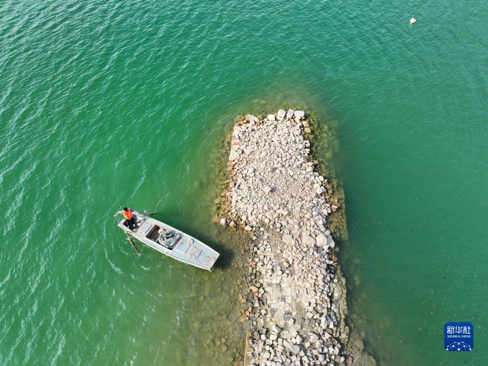 8月30日,衡丙三將船靠岸,準備巡查長城(無人機照片)。