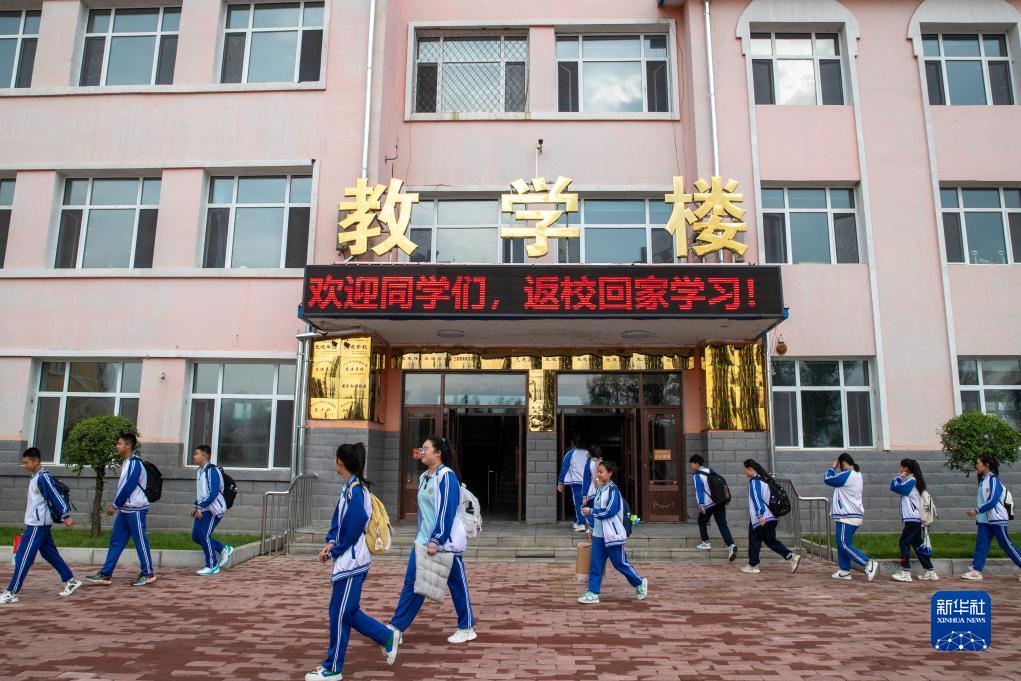 9月1日,在哈爾濱市延壽縣第四中學,學生有序進入校園。