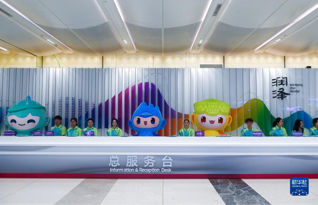 這是主媒體中心主新聞中心的總服務台(9月1日攝)。