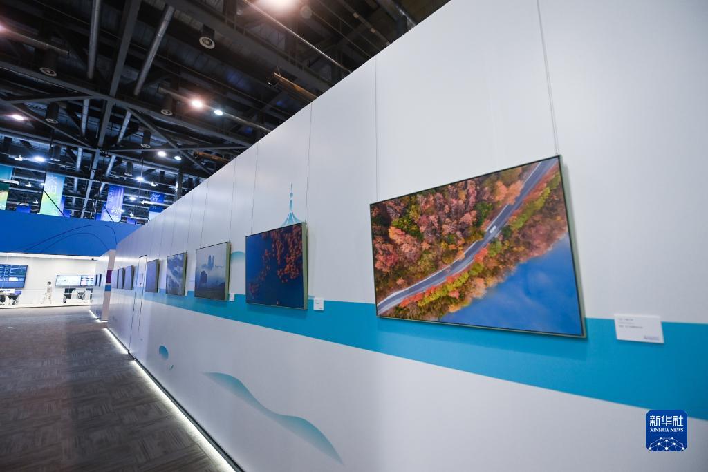 這是主媒體中心工作間墻壁上懸挂的浙江風光照片(9月1日攝)。