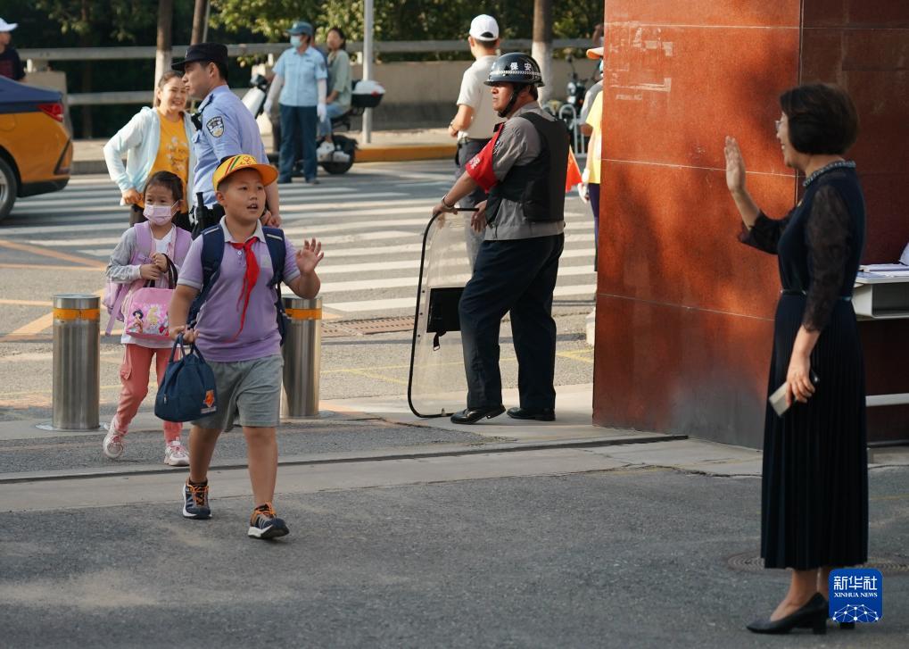 9月1日,在京師實驗中學借址開學的門頭溝區黑山小學的學生來到校園。