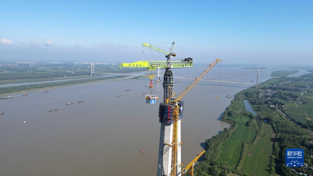 馬鞍山公鐵兩用長江大橋南主塔首節段鋼塔順利吊裝