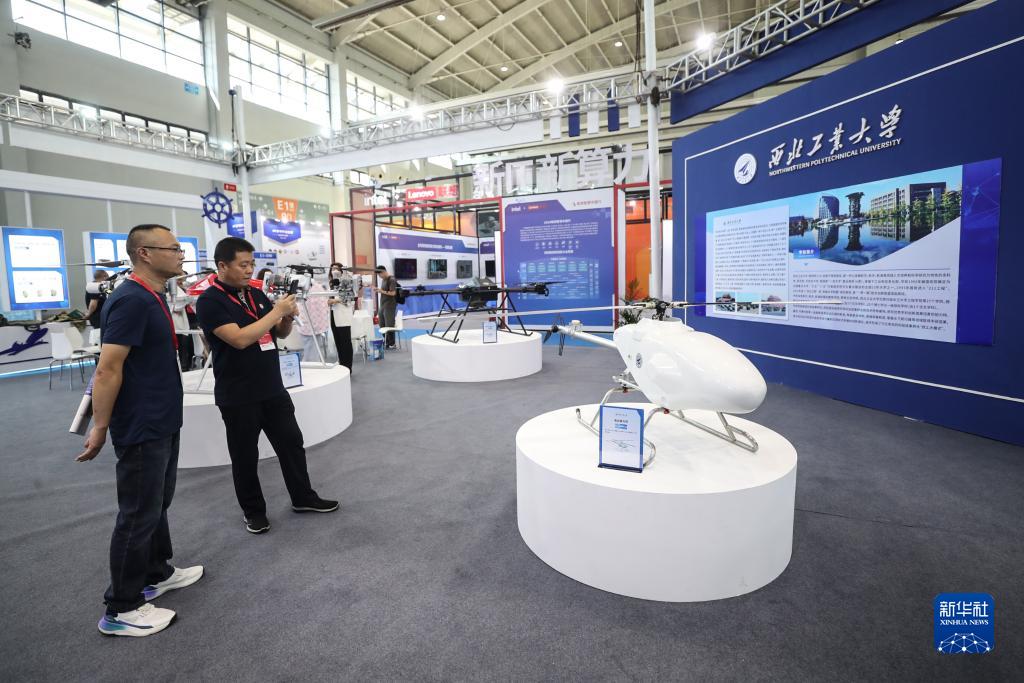 9月1日,參觀者在第二十一屆中國國際裝備製造業博覽會現場參觀展出的電動直升機。