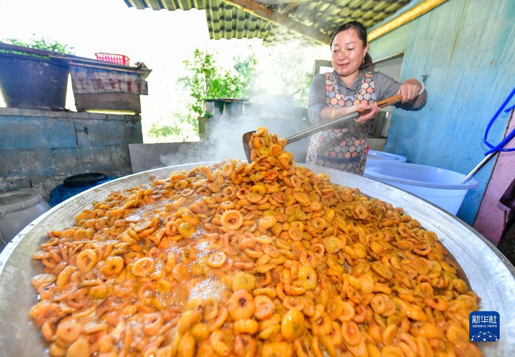9月1日,村民在貴州省龍裏縣谷腳鎮茶香村一家刺梨專業合作社熬製刺梨果脯。
