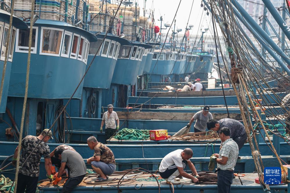 9月1日,在山東省榮成市石島漁港,漁民準備出海起航。