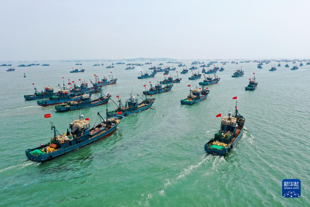 當日,為期四個月的黃渤海伏季休漁結束,所涉漁區迎來“開海”,各漁港碼頭千帆競發,漁船出海進行捕撈作業。