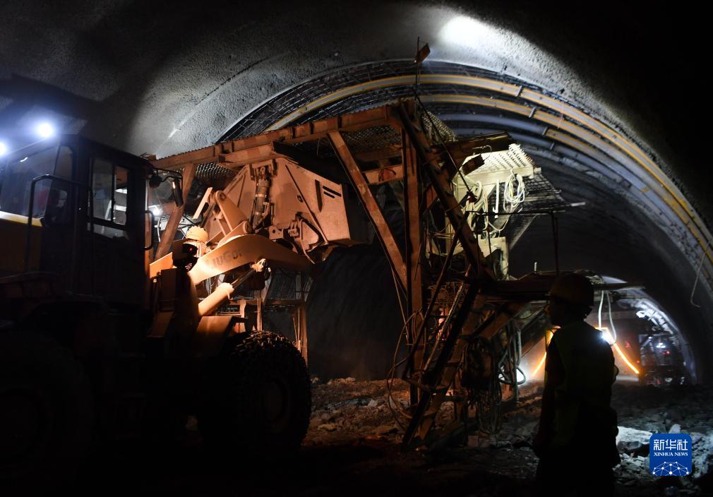 9月1日,施工人員在位於陜西省寶雞市麟游縣的麟法高速石臼山隧道內施工。