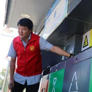 9月1日,莊墓鎮棗林社區居民在使用智能垃圾分類回收設備。