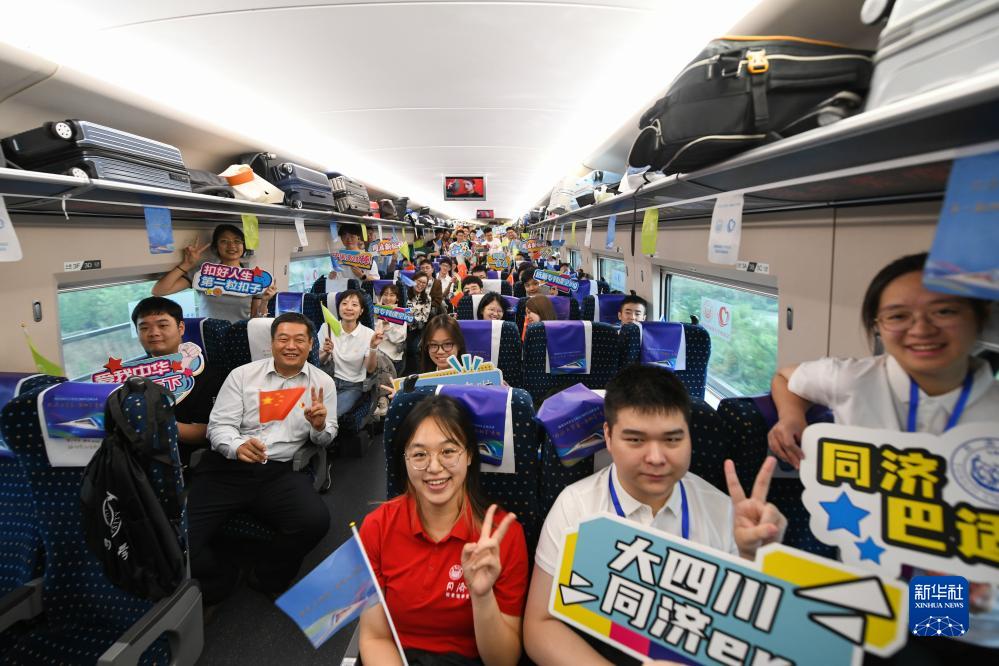 當日,四川省同濟大學校友會和同濟大學四川招生組聯合中國鐵路成都局集團有限公司,舉行高鐵“包車”活動,免費送同濟大學150名2023級四川籍新生和他們的家長前往上海。