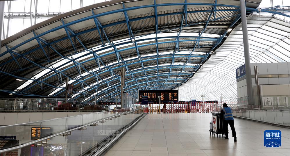 9月1日,一名工作人員在英國倫敦滑鐵盧火車站內行走。