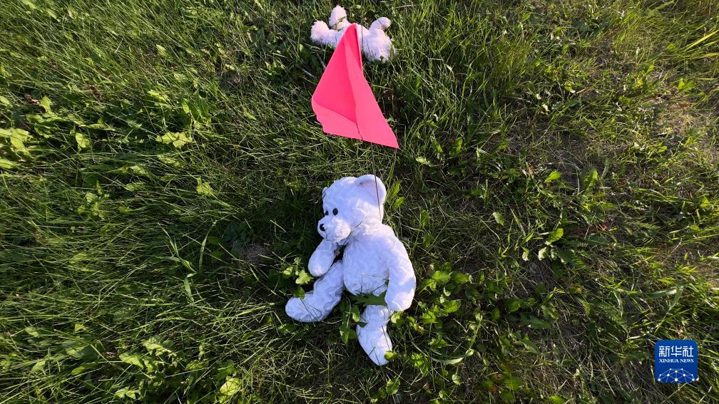 這是8月31日在加拿大薩斯喀徹溫省博瓦爾印第安人寄宿學校舊址拍攝的用粉色旗子標出的疑似兒童或嬰兒墓地。