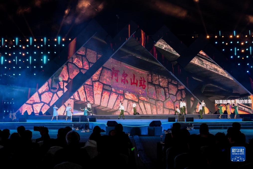 這是9月1日拍攝的“水韻阿爾山”焰火音樂晚會歌舞表演。