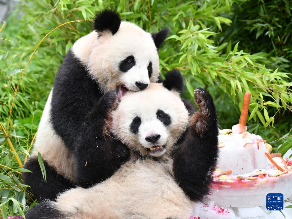 當日,在德國出生的大熊貓雙胞胎兄弟“夢想”和“夢圓”迎來4歲生日,柏林動物園為它們舉辦了慶祝活動。