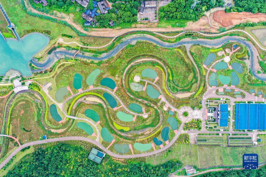 9月2日拍攝的廣西大藤峽水利樞紐南木江副壩倣自然生態魚道和周邊配套設施(無人機照片)。
