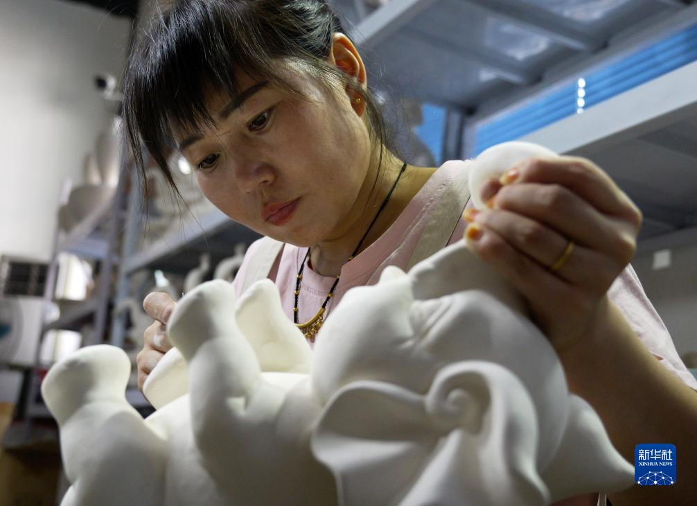 8月31日,在清涼寺村的一家汝瓷生産企業,工作人員在車間里加工汝瓷素坯。