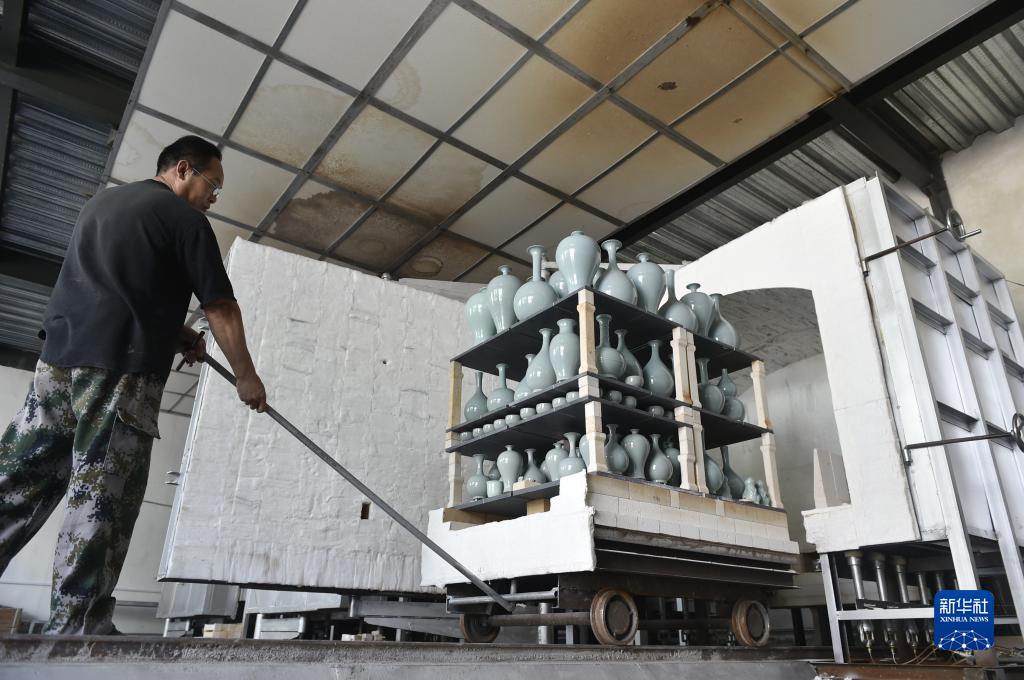 8月31日,在清涼寺村的一家汝瓷生産企業,工作人員在車間裏開窯。