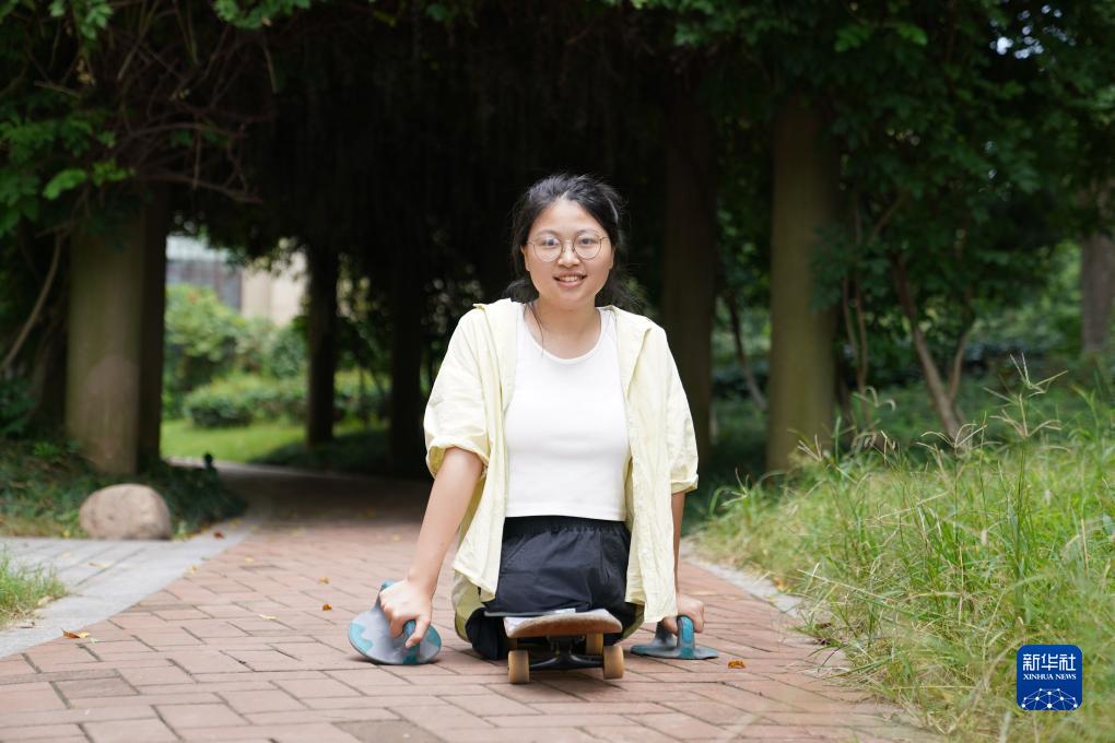 使用滑板出行的蔣張子怡(8月31日攝)。