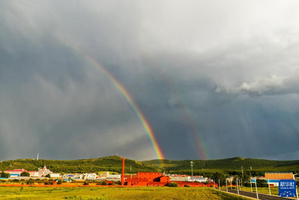 這是8月31日拍攝的阿爾山市的彩虹(無人機照片)。