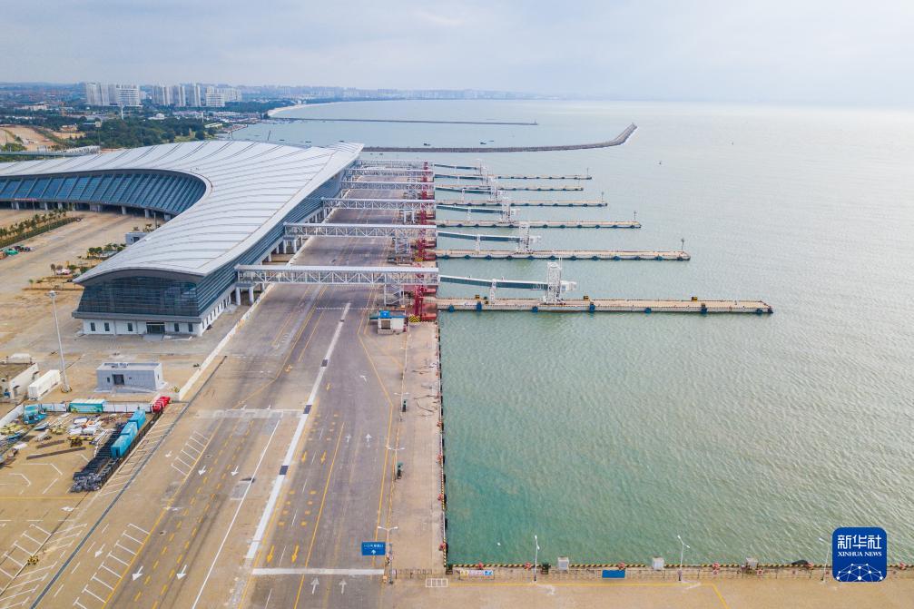 9月2日拍攝的海南省海口市新海港碼頭,客滾輪已全部前往錨地避風(無人機照片)。
