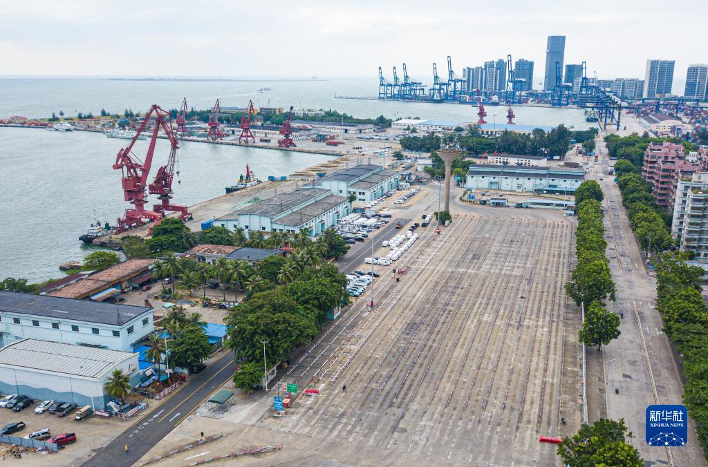 9月2日下午在海南省海口市秀英港拍攝的待渡車場(無人機照片)。
