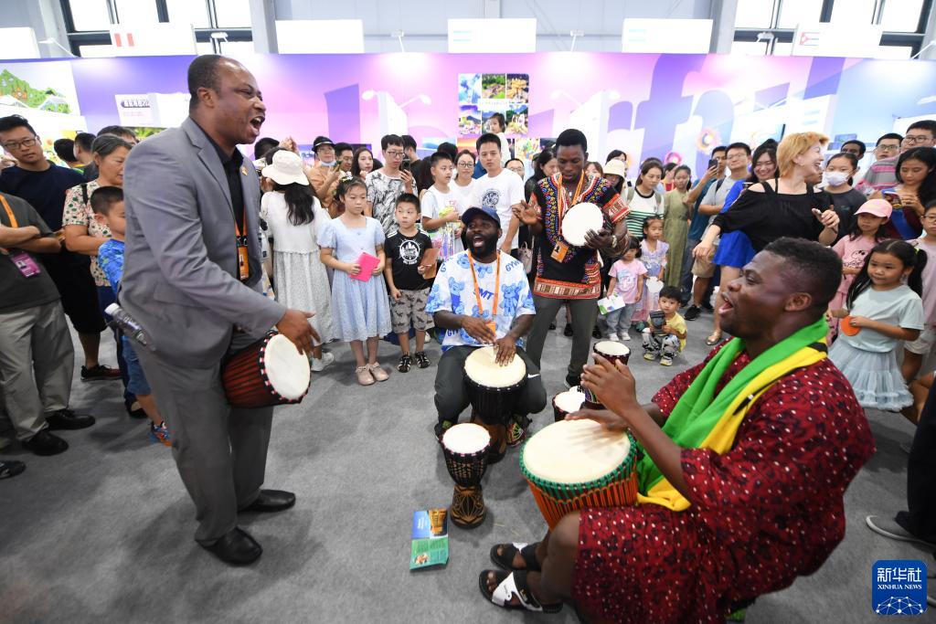 9月2日,在“一帶一路”沿線國家特色文化展示活動上,加納共和國駐華大使館展區的工作人員在現場即興表演。