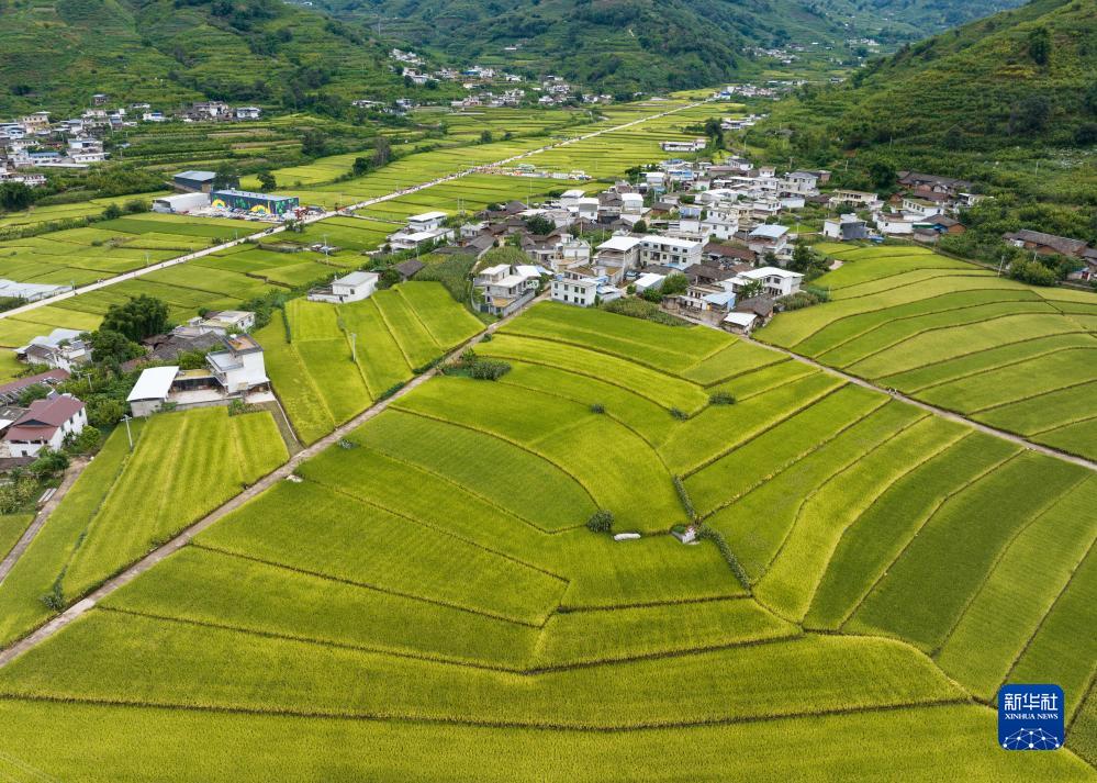 俯瞰鹽邊縣惠民鎮興隆村稻田(9月2日攝,無人機照片)。