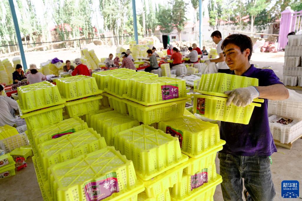 眼下,位於塔克拉瑪幹沙漠西緣的新疆伽師縣種植的新梅迎來收穫季。近年來,伽師縣依託廣東援建的粵伽新梅産業園不斷推動新梅提質增效,形成集種植、採摘、分選、冷藏、包裝、加工、銷售於一體的全産業鏈條,銷售期由往年20天集中上市延長至2-6個月分批上市,錯峰銷售、保質穩價。